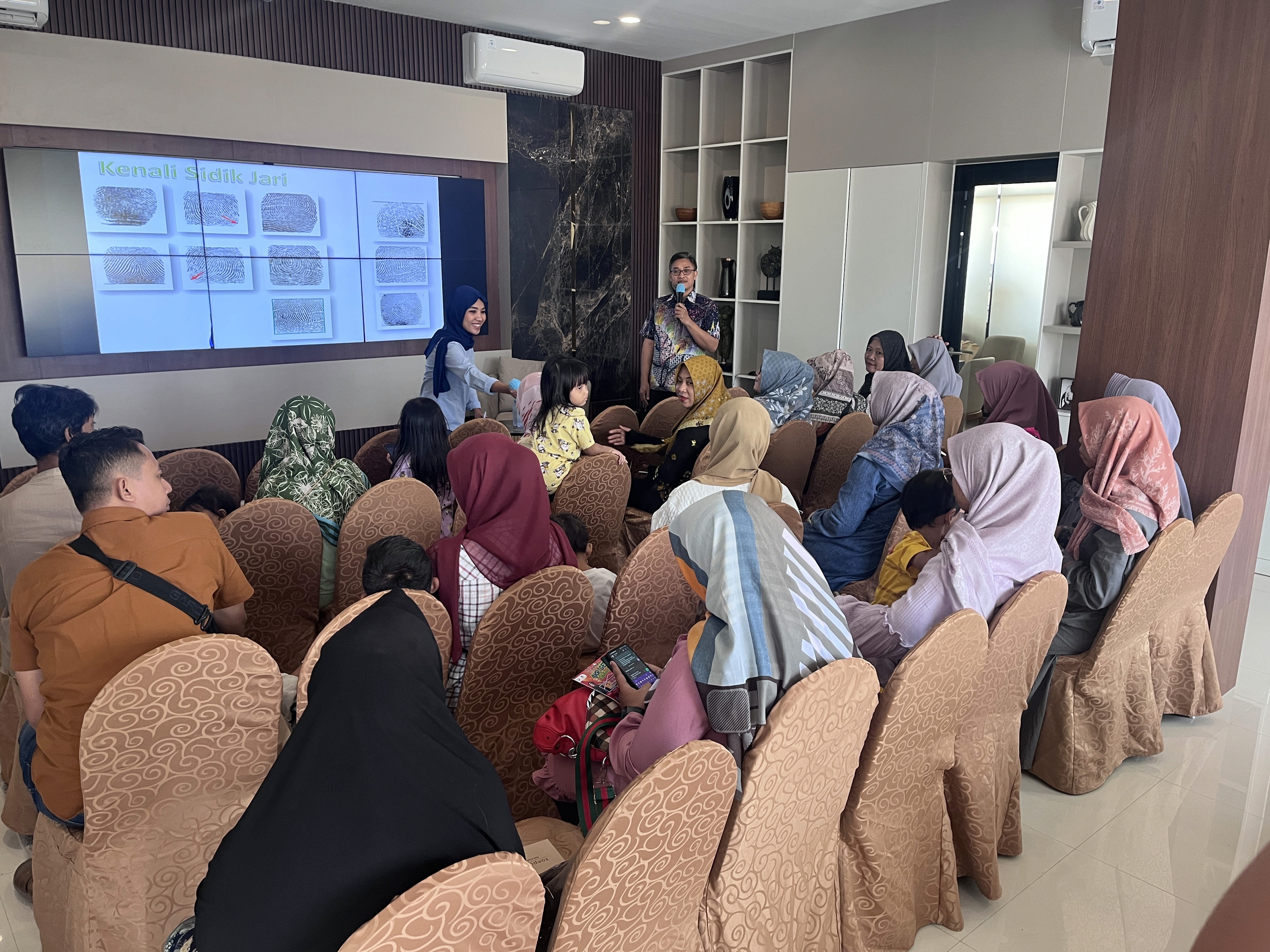 Acara ini menghadirkan Sembadim, SE sebagai narasumber, yang ahli di bidangnya. Ia menjelaskan secara komprehensif tentang berbagai pendekatan untuk mengidentifikasi bakat dan kecerdasan anak. Salah satu metode yang paling disoroti adalah Tes Fingerprint, sebuah teknik yang dipercaya dapat menganalisis pola sidik jari untuk membaca potensi genetik dan kecerdasan bawaan seseorang. Para peserta seminar tampak aktif berinteraksi dengan narasumber, mengajukan pertanyaan seputar aplikasi praktis dari teori-teori yang disampaikan.