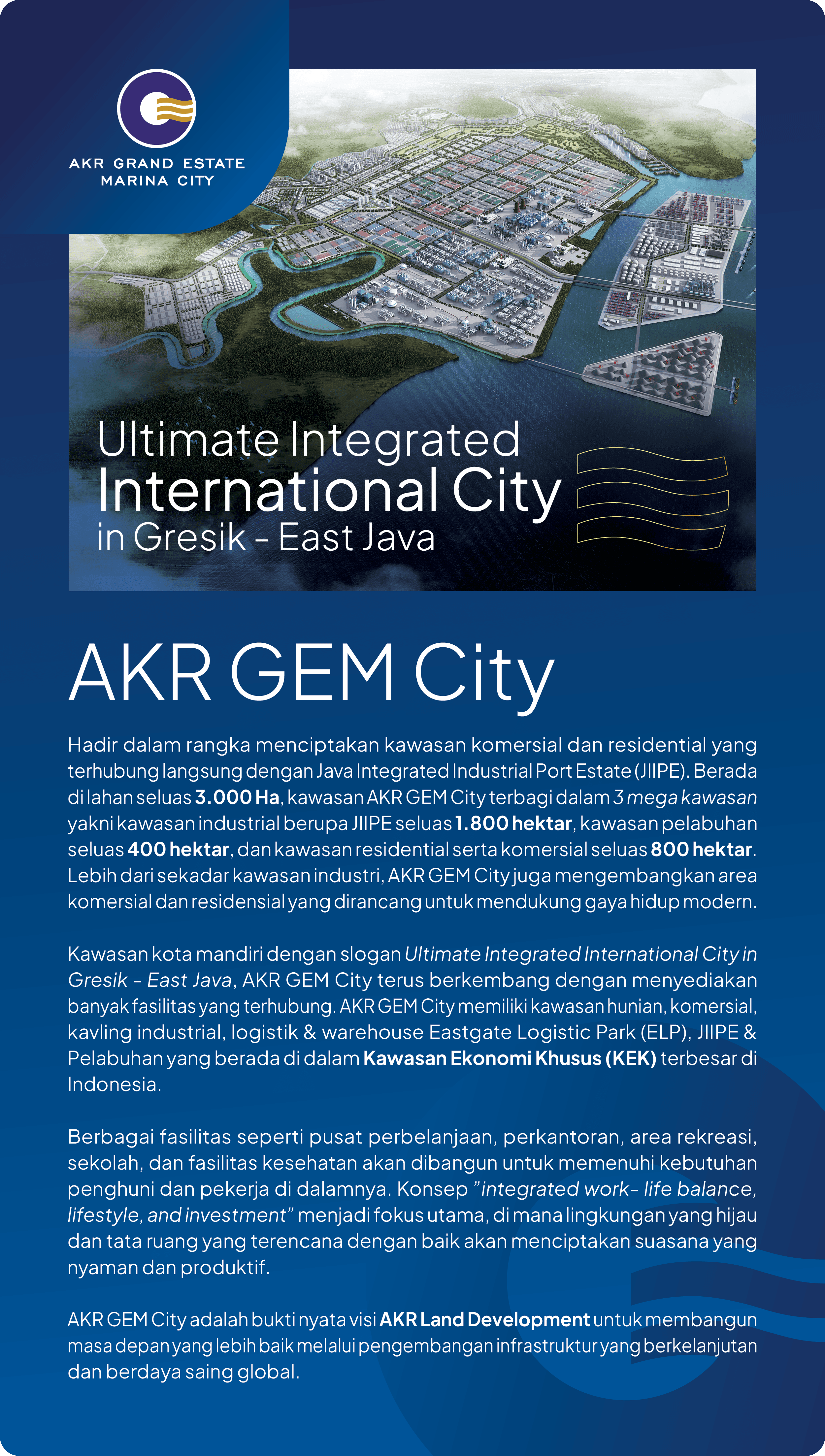 AKR Land merupakan grup usaha yang telah berkpirah selama lebih dari 20 tahun dan merupakan salah satu anak usaha dari AKR Corporindo Tbk.