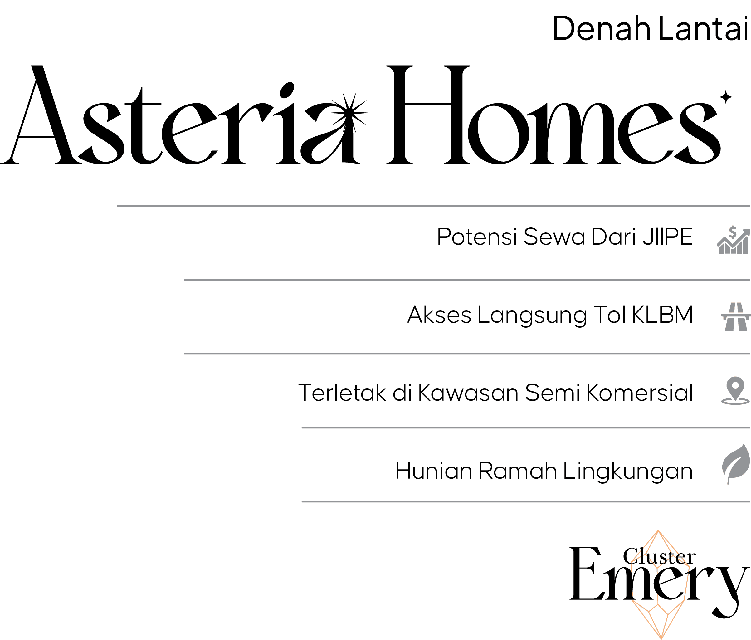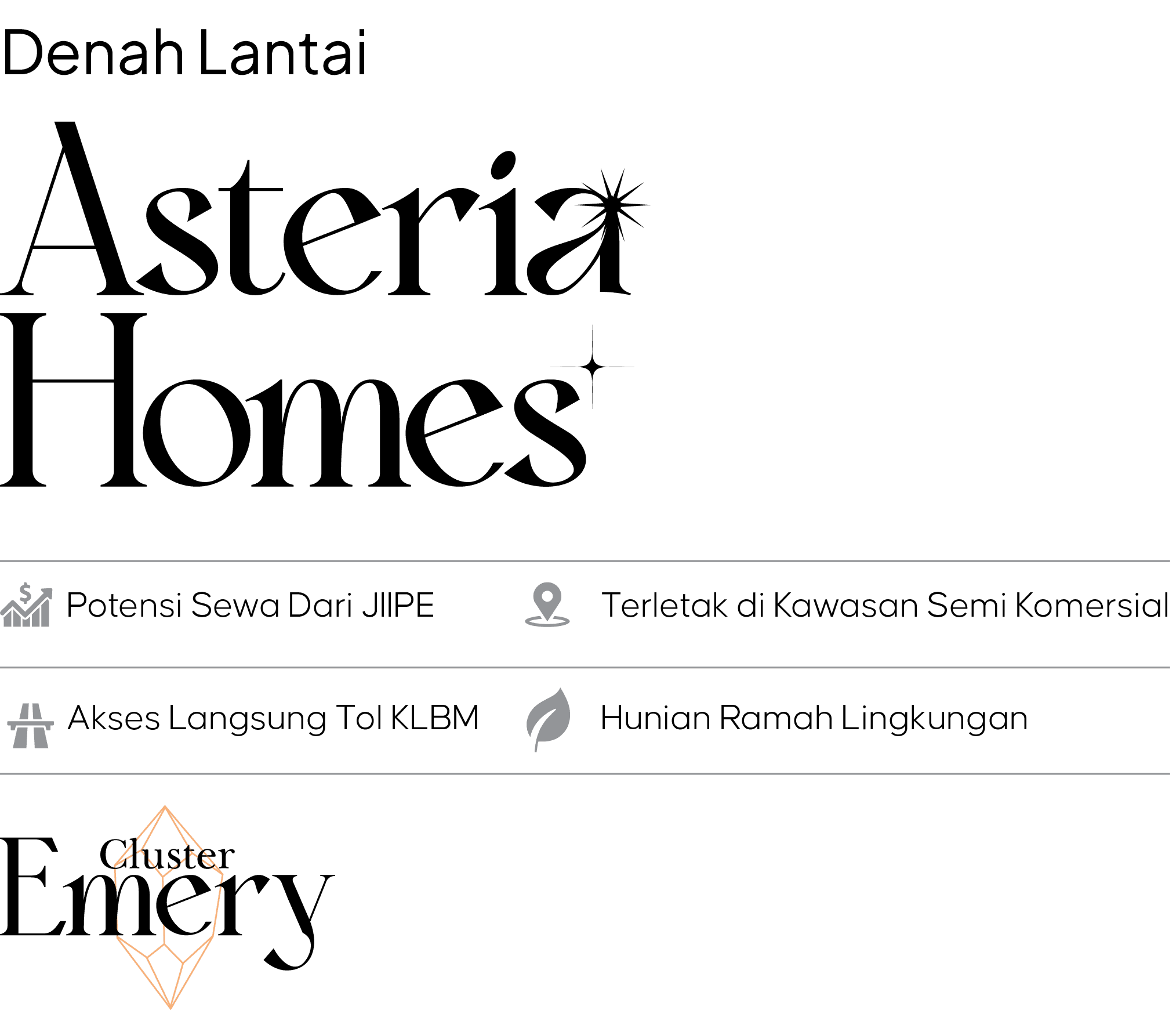 Asteria Homes, Cluster terbaru dari AKR GEM City berlokasi di kota Gresik yang memiliki lokasi strategis untuk mengakses peruman ini dengan mudah, Asteria Homes berkapasitas 2 lantai dengan konsep Compact & Comfortable yang memanfaatkan setiap lahannya dengan maksimal